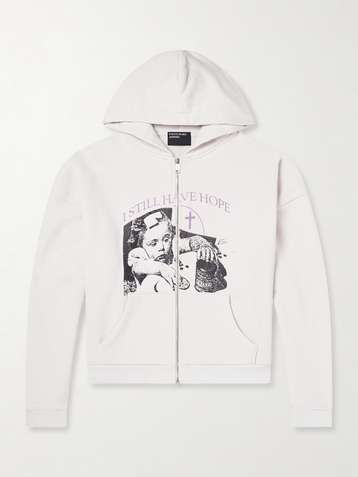 I Still Have Hope Printed Cotton-Jersey Zip-Up Hoodie