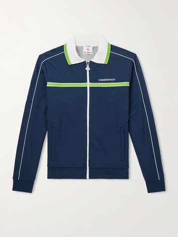 Slim-Fit Logo-Embroidered Cotton-Blend Velour Track Jacket