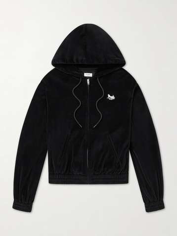 Logo-Embroidered Cotton-Blend Velour Zip-Up Hoodie