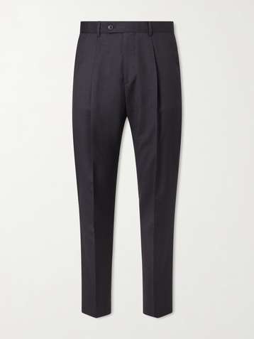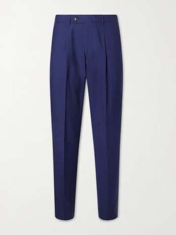 Tapered Pleated Wool and Linen-Blend Trousers