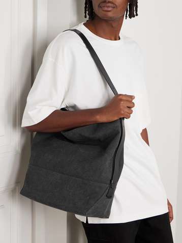 Leather-Trimmed Cotton-Canvas Tote Bag