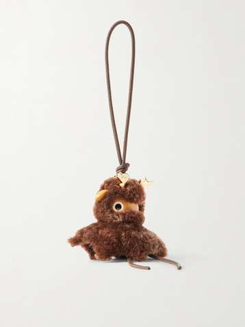 Triomphe Leopard-Print Shearling and Leather Keyring