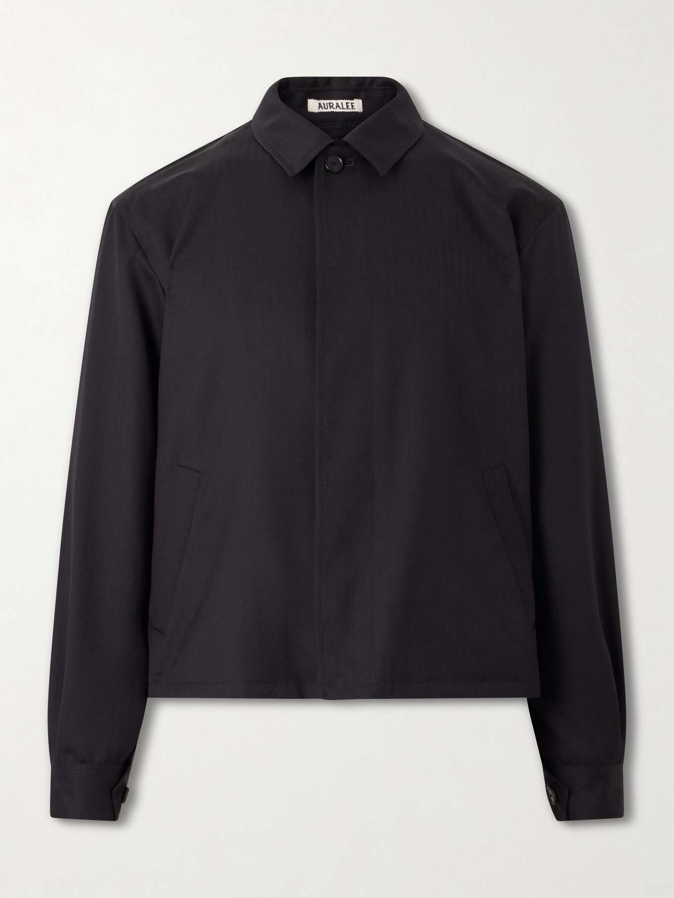 Auralee's blouson is cut from fine wool herringbone with a natural sheen and graceful drape, in a regular fit. Unlined and finished with a button closure and two slit pockets, it’s a lightweight, sophisticated piece ideal for refined everyday layering.