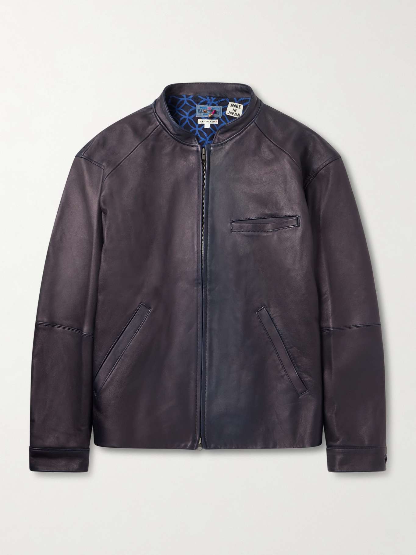 BLUE BLUE JAPAN Indigo-Dyed Leather Biker Jacket