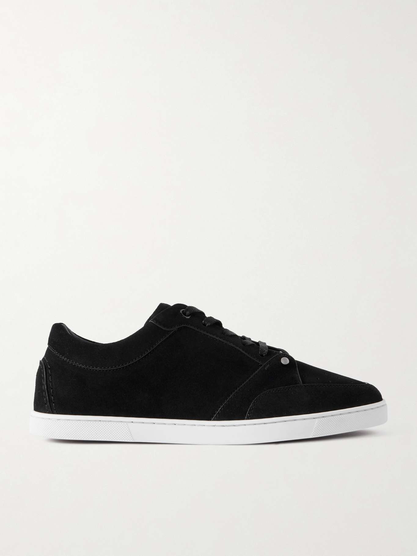 Christian Louboutin's 'Chambelisneak' sneakers have been crafted in Italy from black suede and feature silver-tone 'collar pins' securing the vamps. They have perforated toe boxes for breathability and durable rubber soles featuring the label's iconic red panels debossed with the scripted logo.