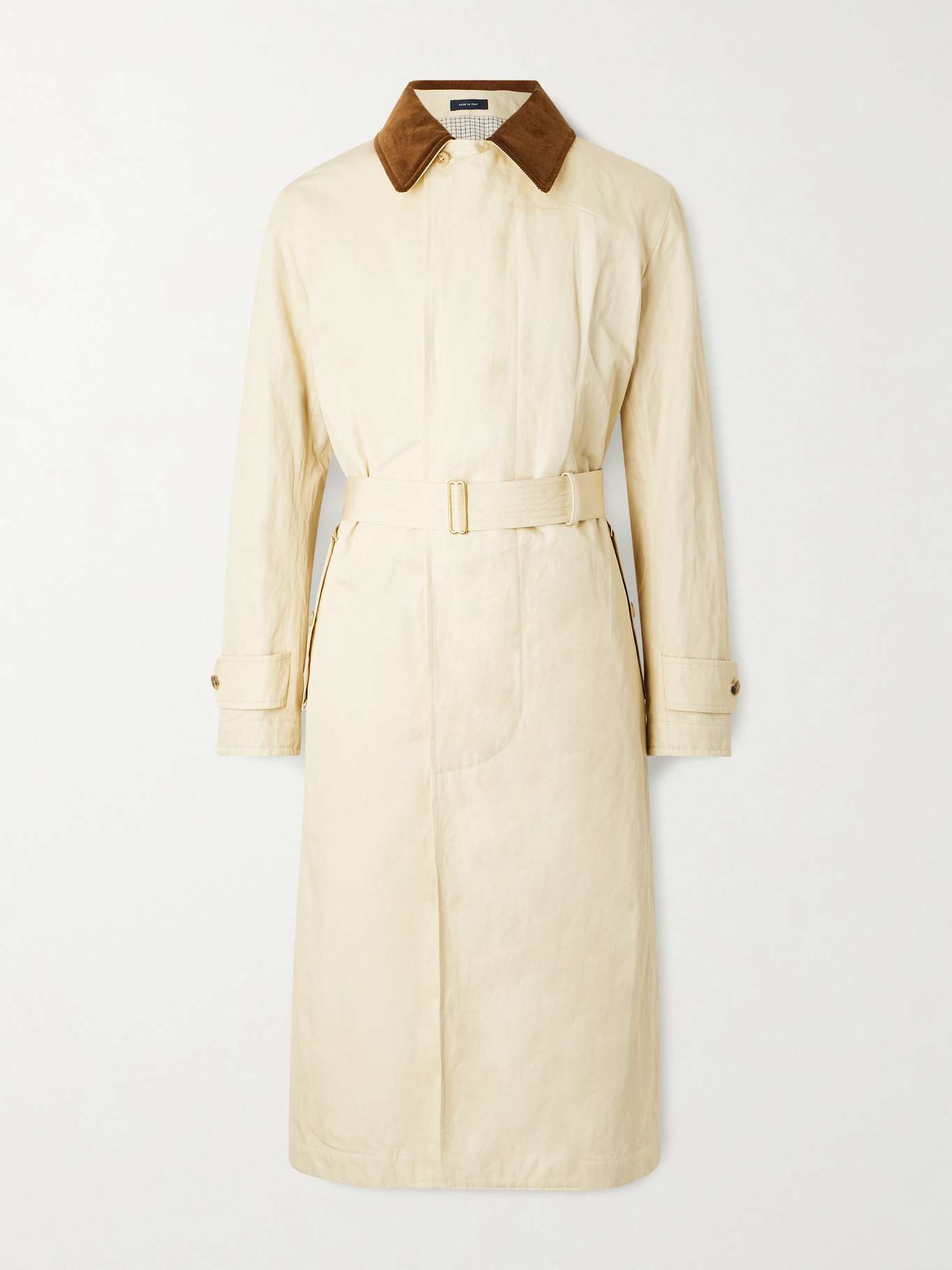 DRAKE'S Rider's Belted Corduroy-Trimmed Cotton-Blend Twill Coat