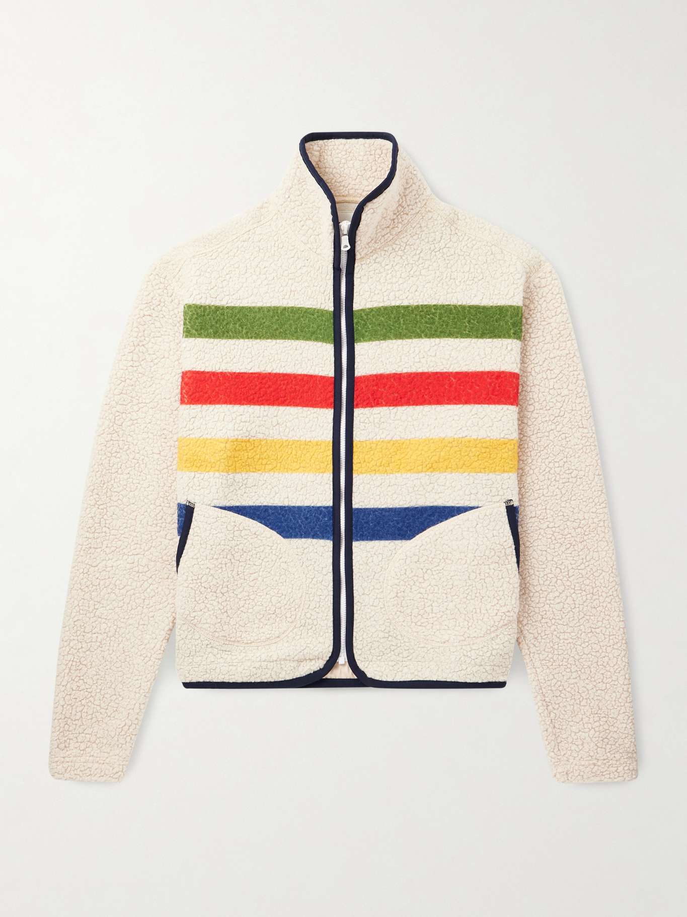 DRAKE'S Striped Wool-Blend Fleece Jacket