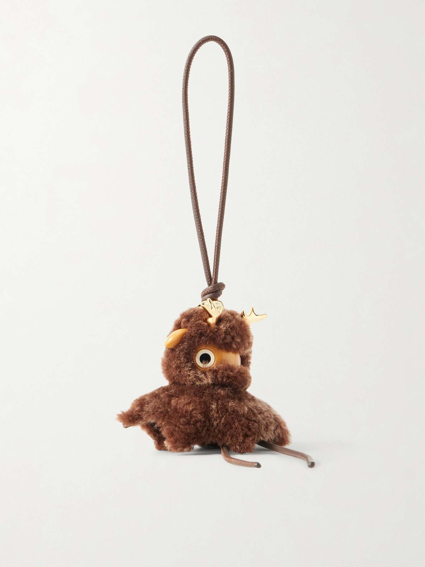 Originally designed to complement Loewe's iconic 'Puzzle' bags, the playful 'Puzz' charm has since expanded into a beloved part of the house's repertoire. This 'Deer' version is made from plush shearling, strung on a length of supple, knotted leather and finished with gold-tone antlers.