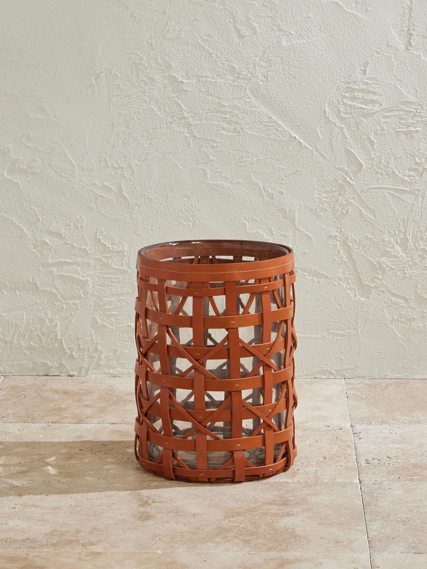 Ralph Lauren Home brings its equestrian heritage to interiors with this medium 'Preston' hurricane. It's made from glass encased in a hand-woven leather cage, creating a warm contrast of texture while shielding candles from drafts. Cluster it with other lanterns for an inviting, layered glow.