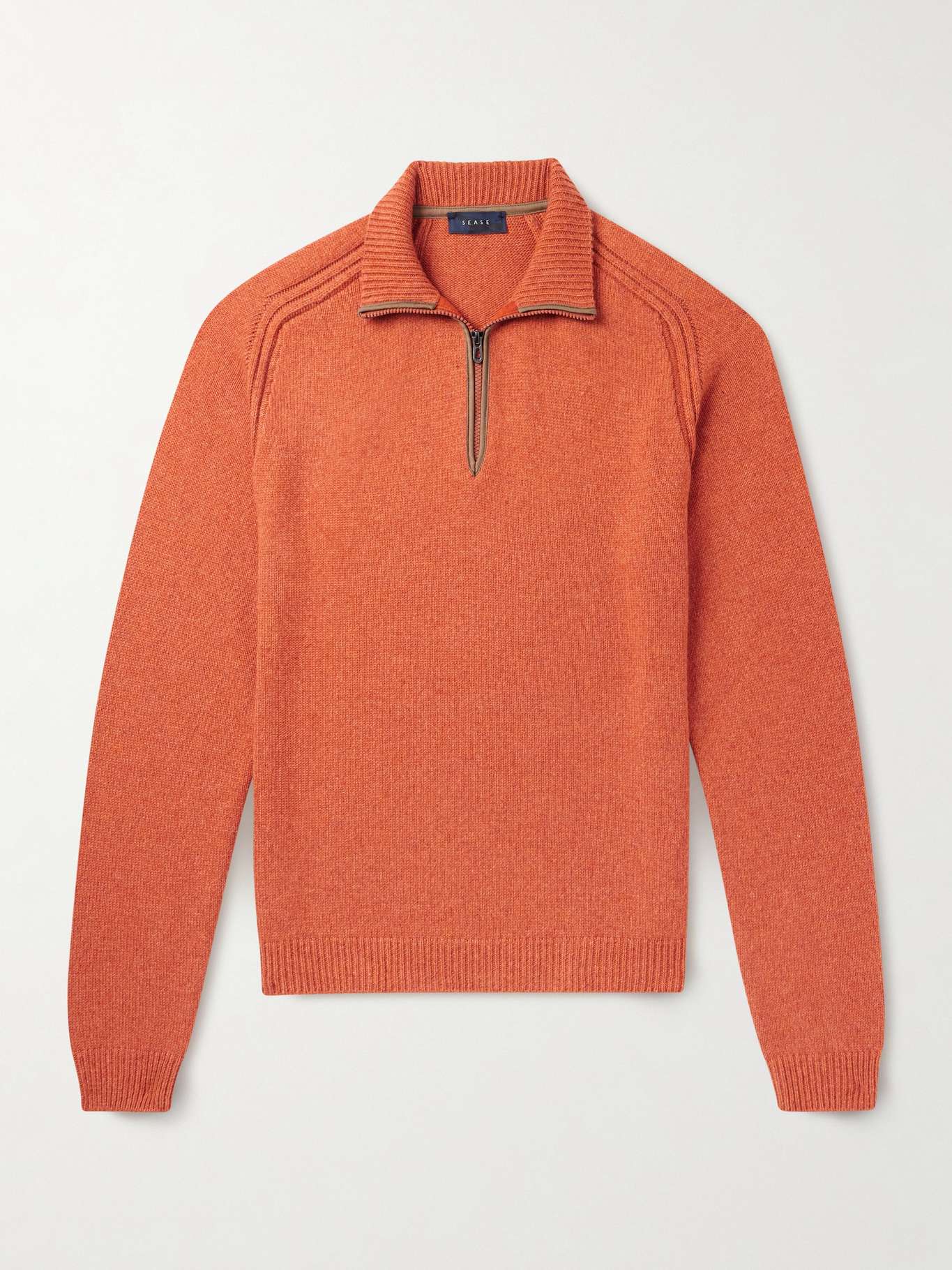 SEASE Leather-Trimmed Cashmere Half-Zip Ski Sweater