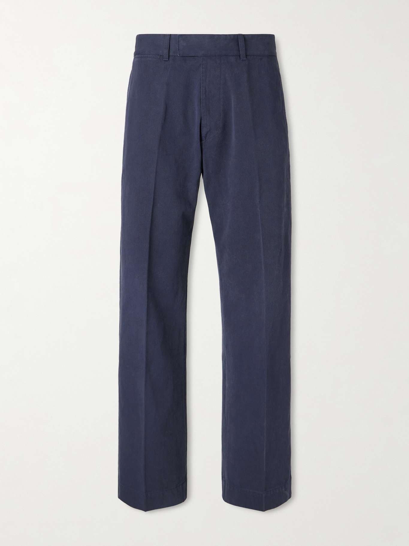 TOM FORD's trousers are tailored from cotton-drill, a durable yet smooth fabric that has its roots in workwear. They're cut for a wide-leg fit and have a covered closure for a clean finish.