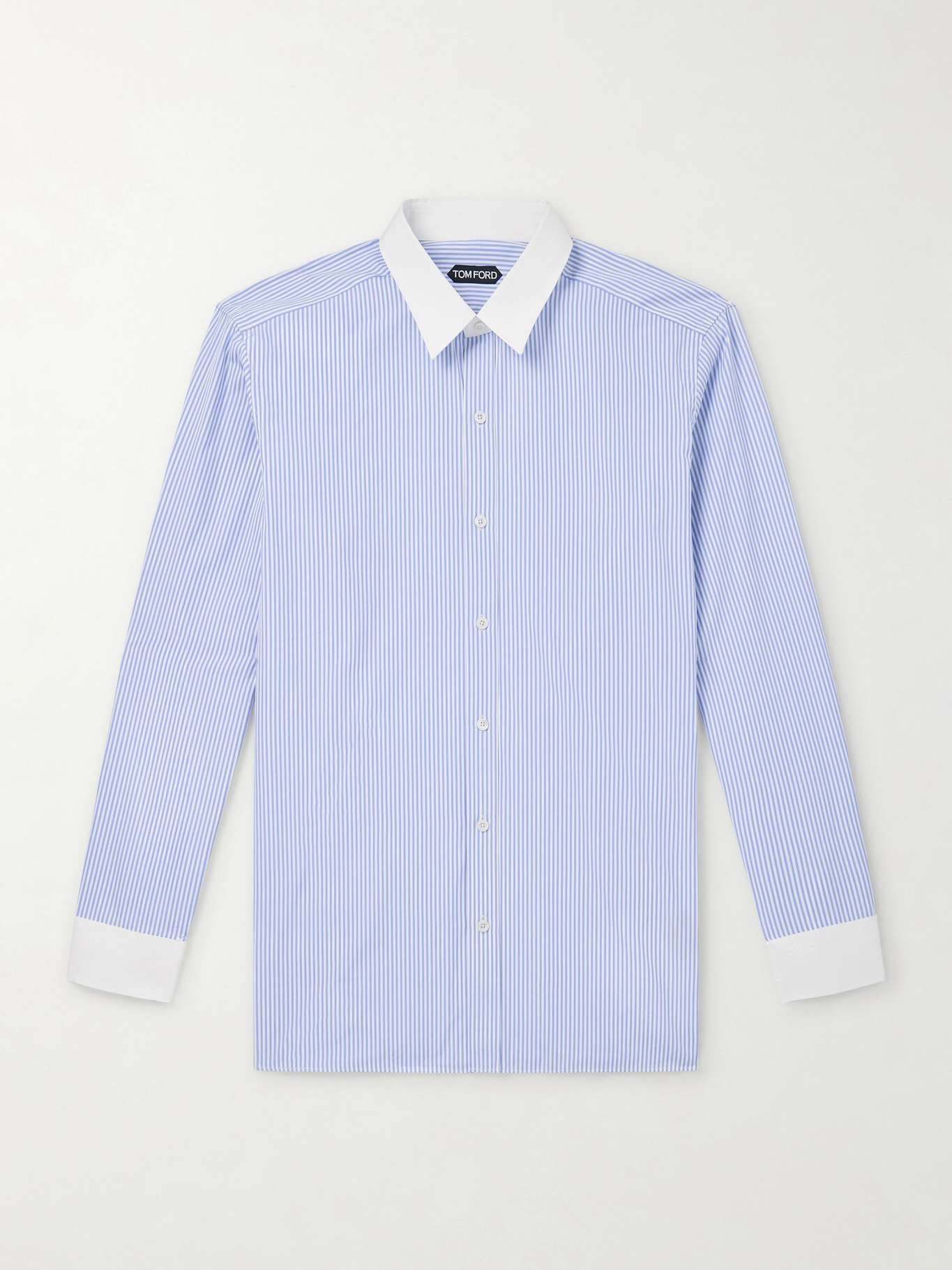 TOM FORD's toothpaste-striped shirt is set apart by the contrasting crisp white collar and cuffs for a subtle point of difference. It's cut from cotton-poplin in a classic fit with barrel cuffs.