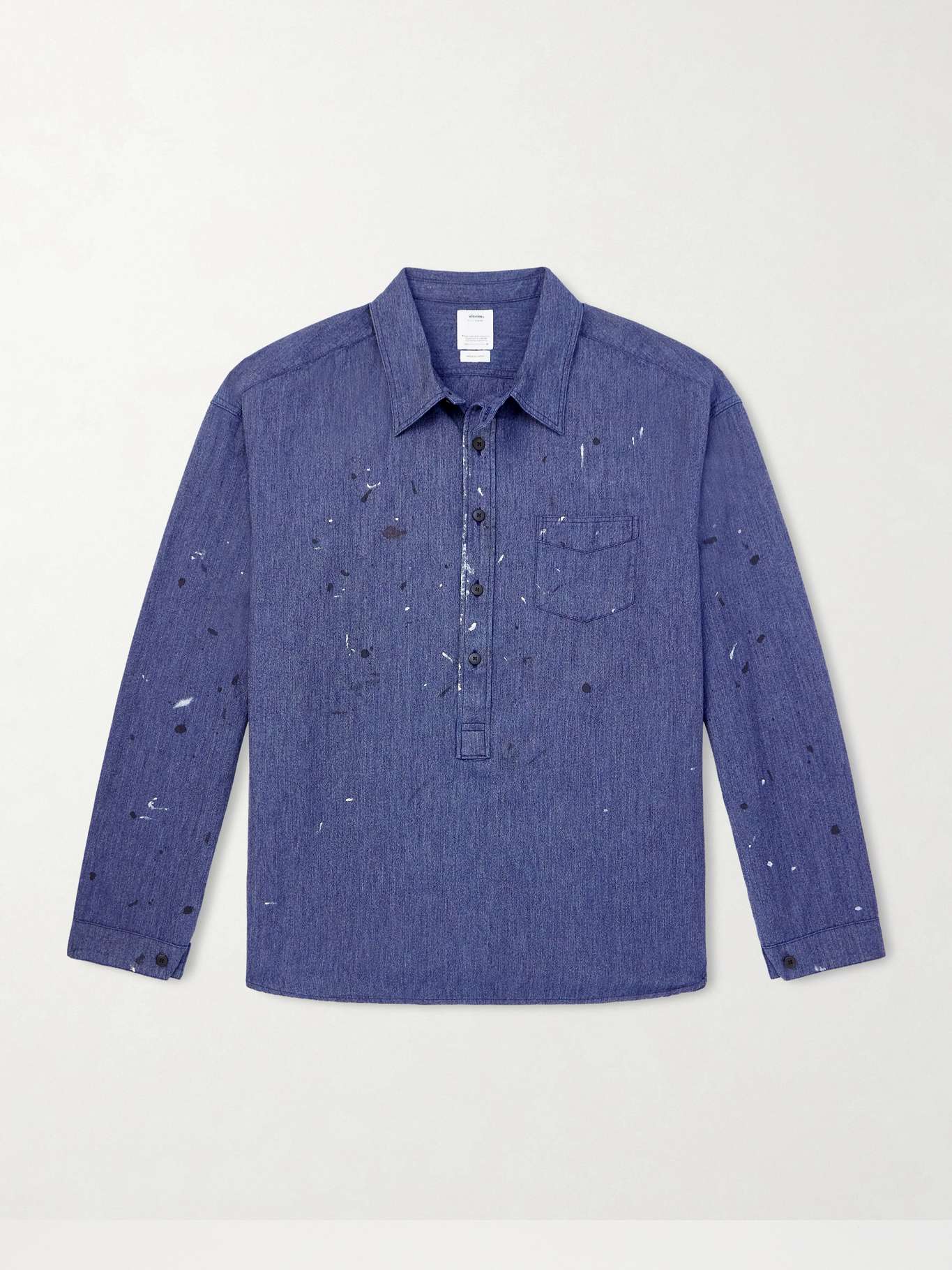 VISVIM Paint-Splattered Cotton and Silk-Blend Chambray Shirt