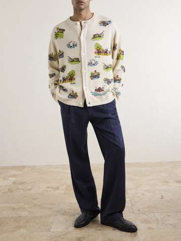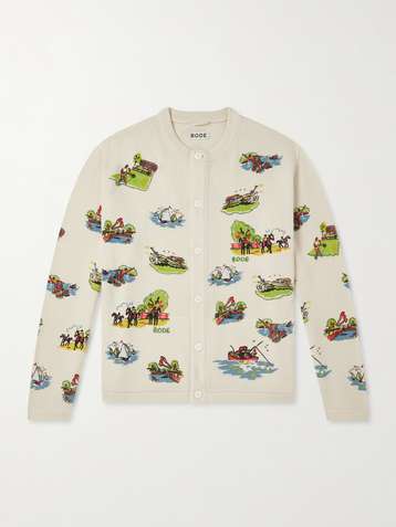 Camp Bead-Embellished Jacquard-Knit Wool and Cotton-Blend Cardigan