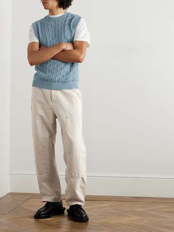 Single Knee Straight-Leg Cotton-Canvas Trousers