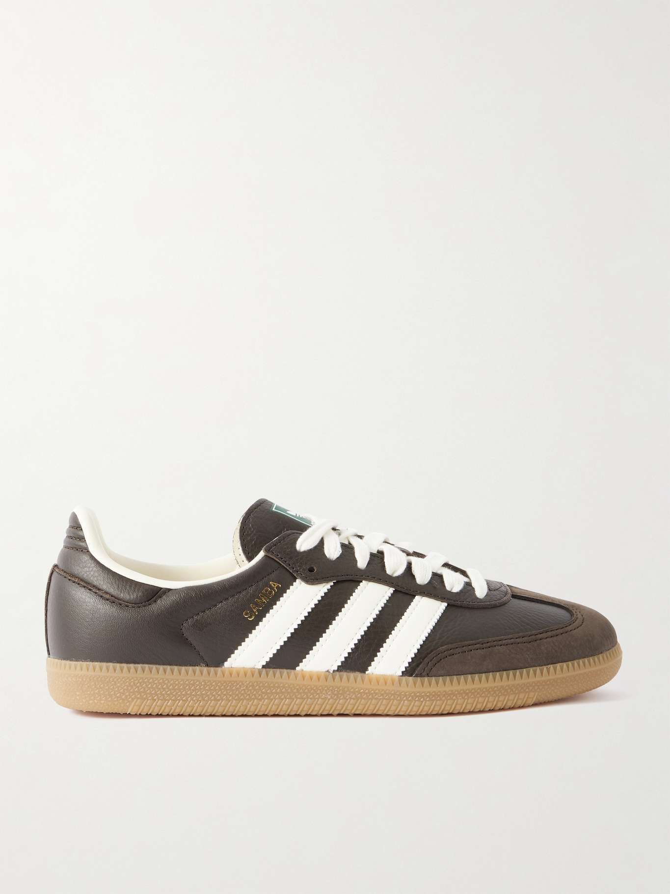 One of the best-selling shoes of all time, adidas Originals' 'Samba' sneakers were first designed for football players in 1949. This 'OG' pair is made from panels of dark-brown nubuck and leather and detailed with the signature '3-Stripes' at the sides.