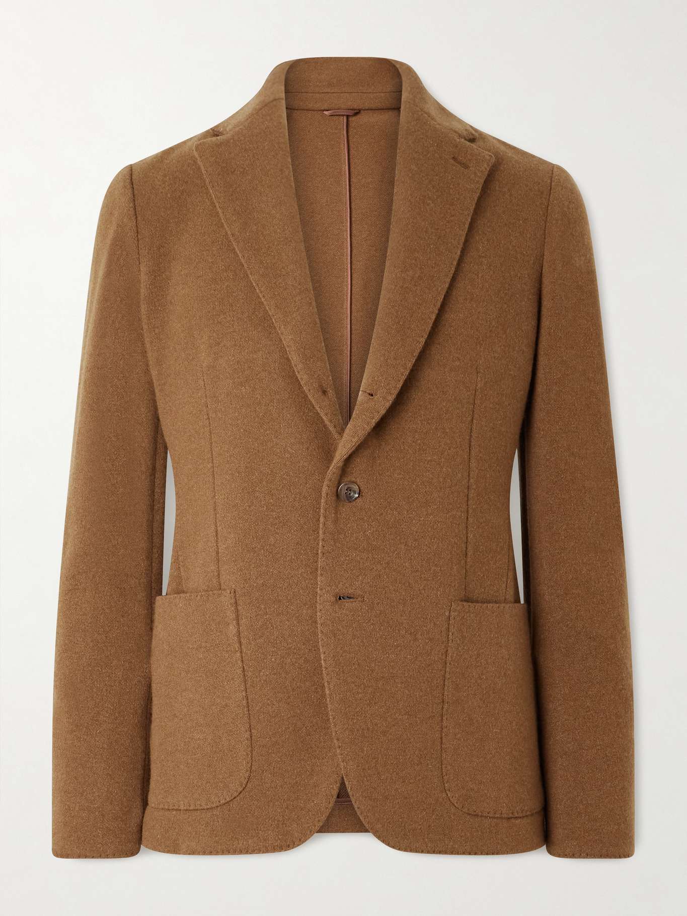 Anderson & Sheppard is known for its refined designs and premium fabrics. This unstructured blazer is made from a soft wool and cashmere-blend and detailed with notch lapels and a two button fastening.