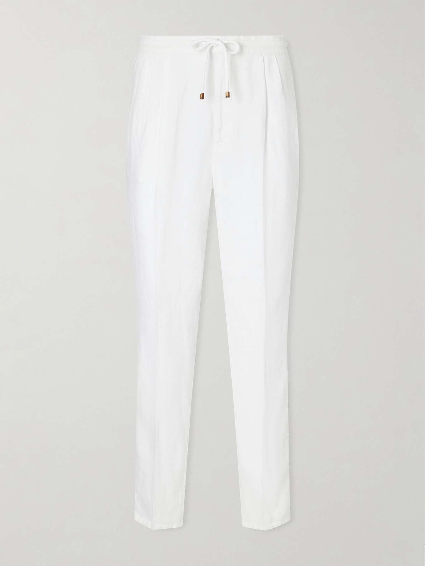 BRUNELLO CUCINELLI Tapered Pleated Linen-Twill Drawstring Trousers