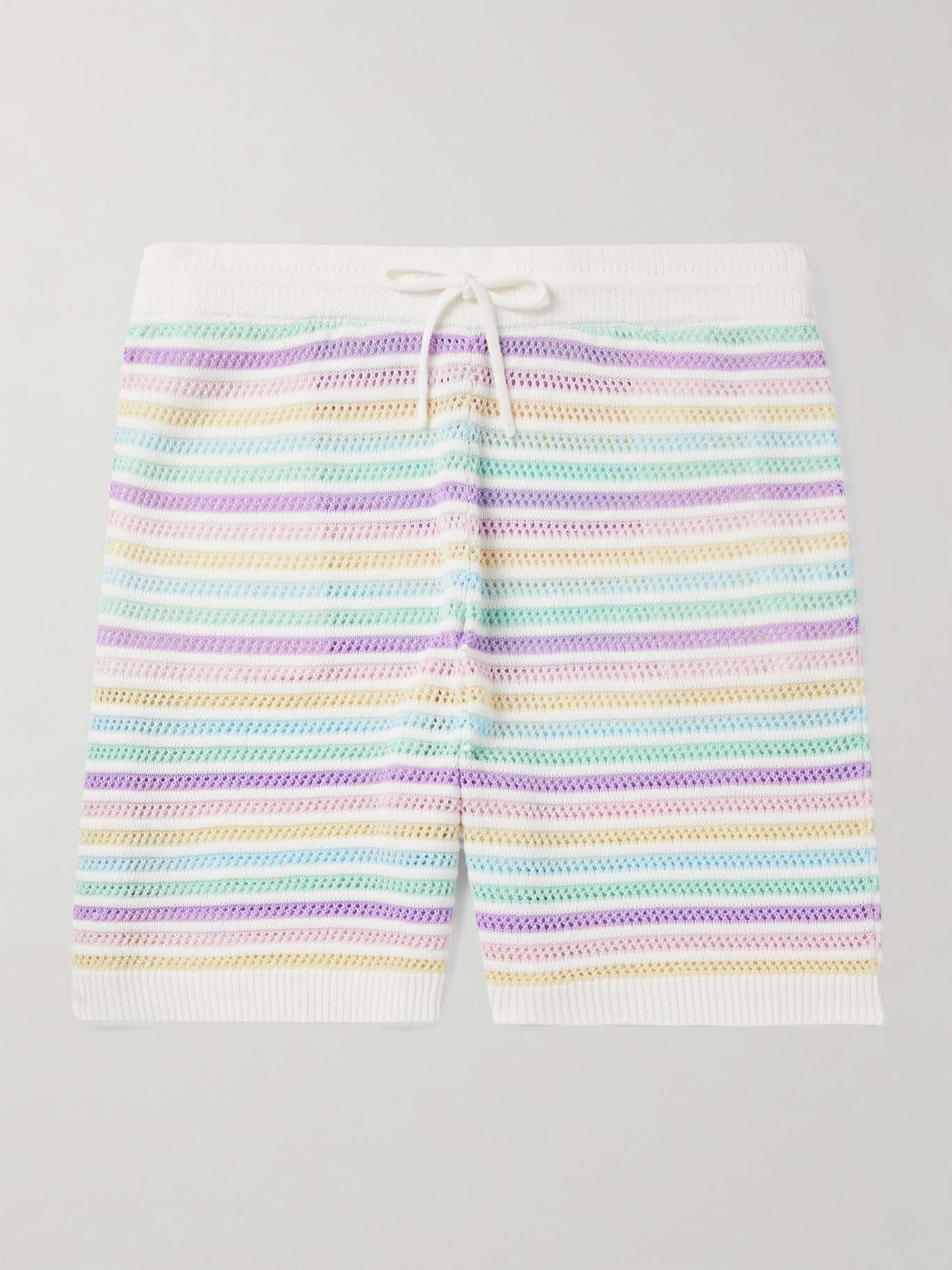 CASABLANCA Flower Straight-Leg Striped Crocheted Cotton Shorts