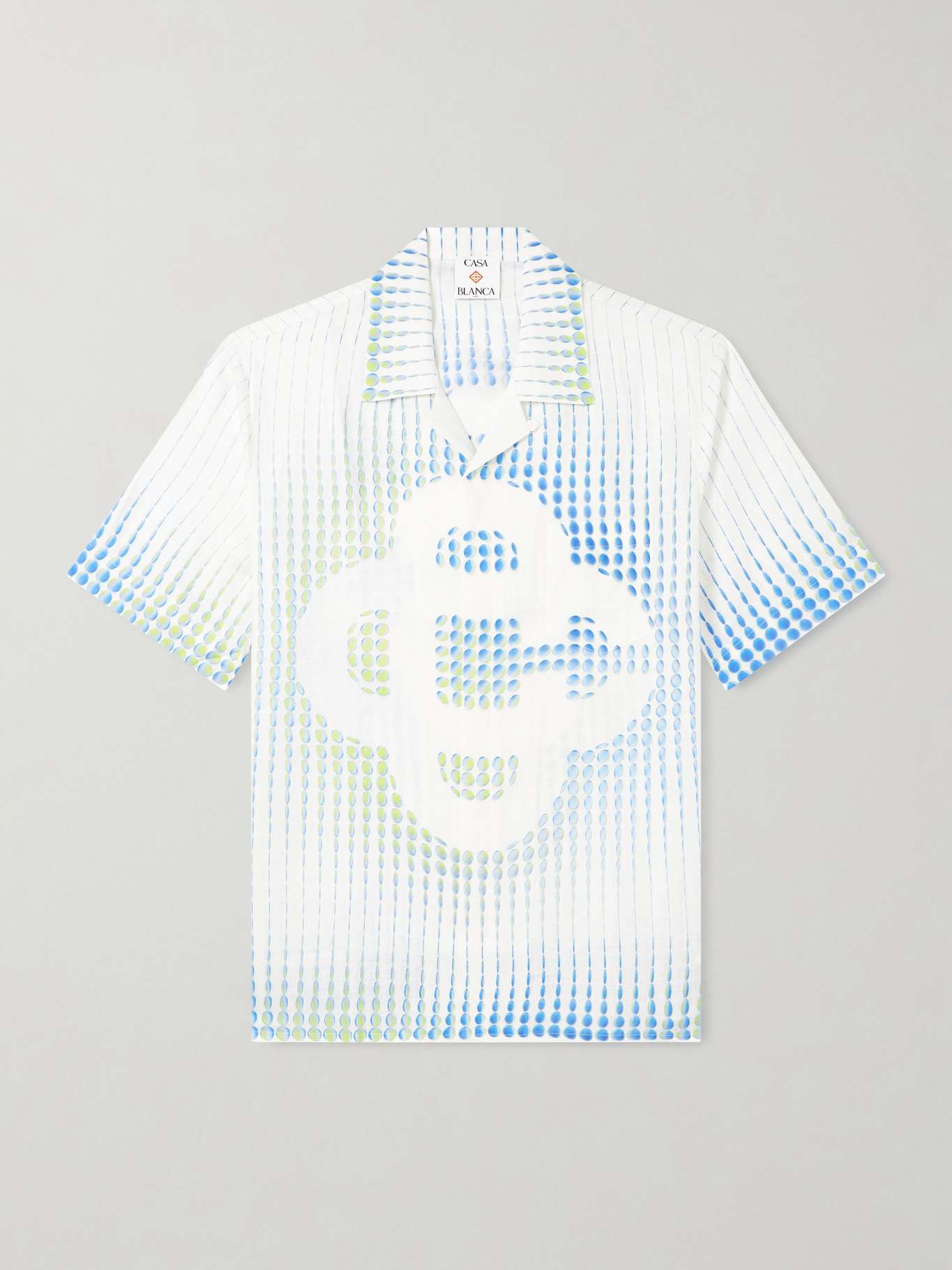 Casablanca's 'Dots' shirt is printed with a geometric pattern by graphic designer Martin Naumann. It's cut for a loose fit from white linen and features its interlocking 'CC' in and amongst spots of blue and green.