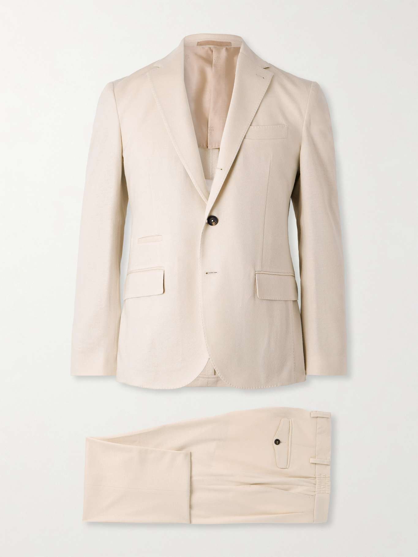 Eleventy's wool suit is a classic you'll turn to for countless occasions. The jacket is partially lined for lightness and has all-over pickstitching, which showcases impeccable attention to detail. The trousers are double-pleated at the front and have unfinished hems, allowing you to alter the break.
