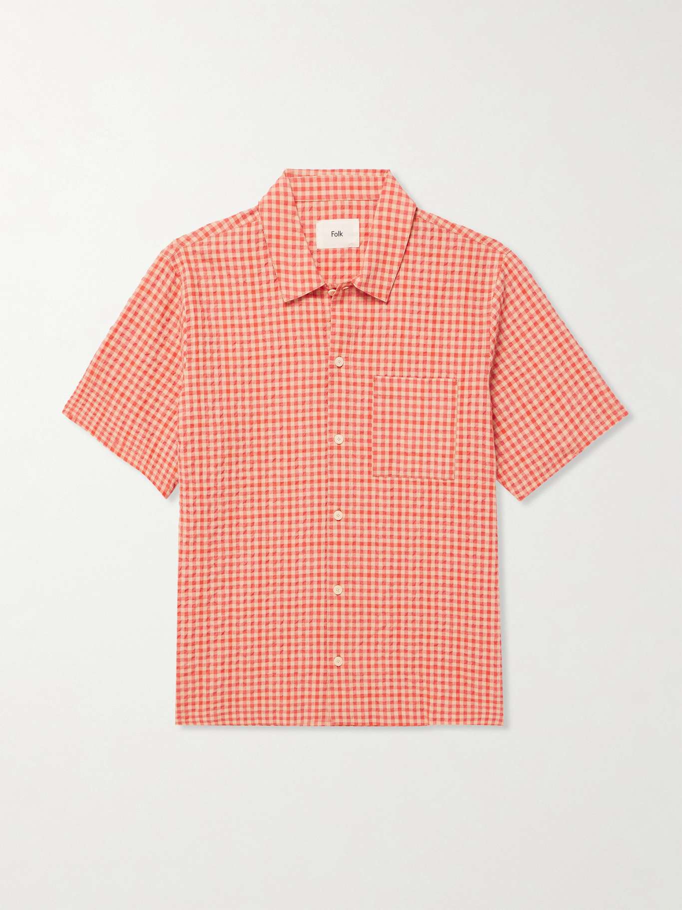Folk's Gabe shirt is cut from textured seersucker patterned with a lively gingham check. Made from a soft cotton blend, it's finished with a classic patch pocket at the chest.