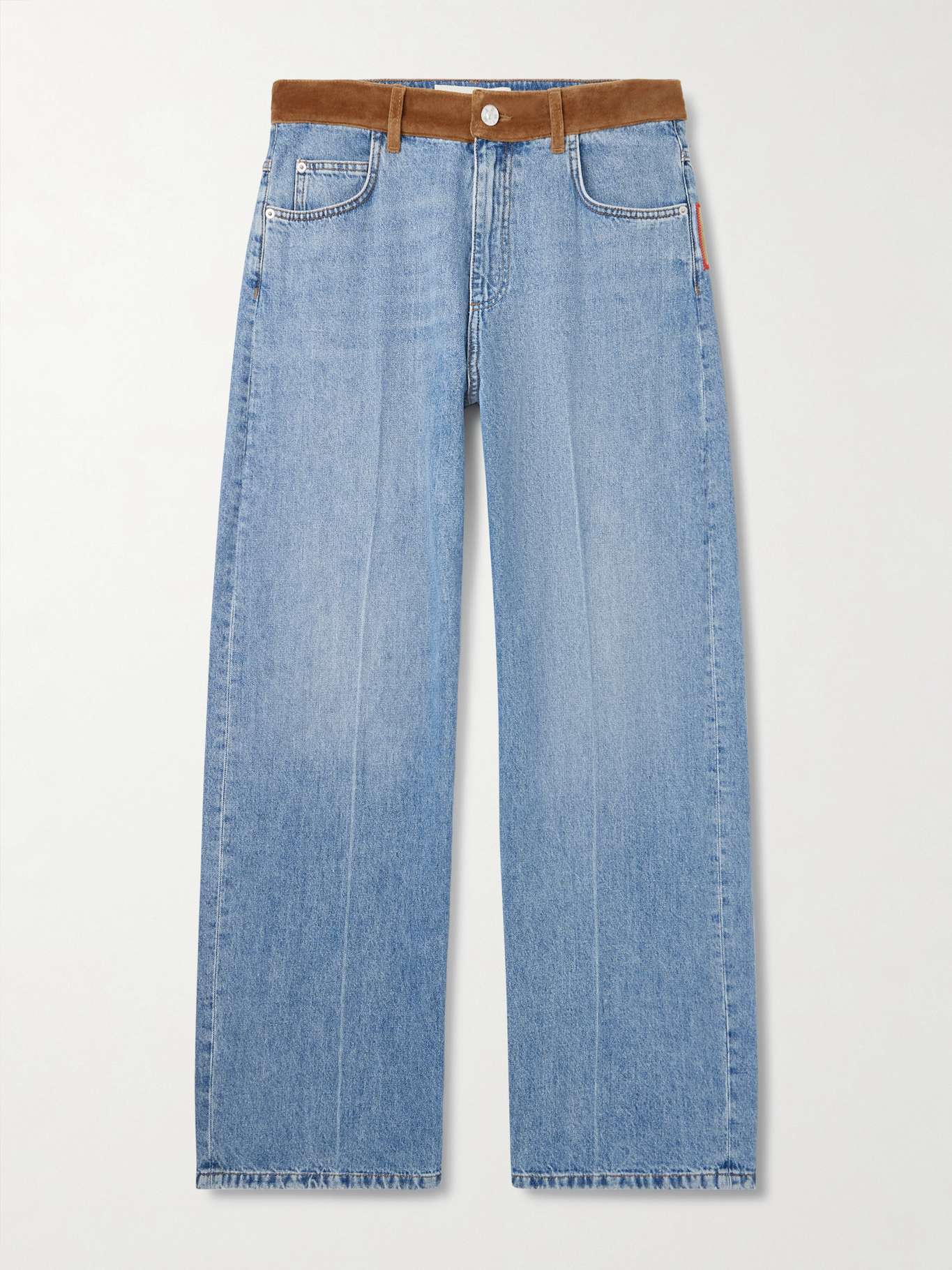 Marni's jeans are designed in collaboration with Nigerian artists Slawn and Soldier. In a relaxed straight cut, they're trimmed with a cotton-velvet waistband and feature playful suede and leather appliqués at the back.