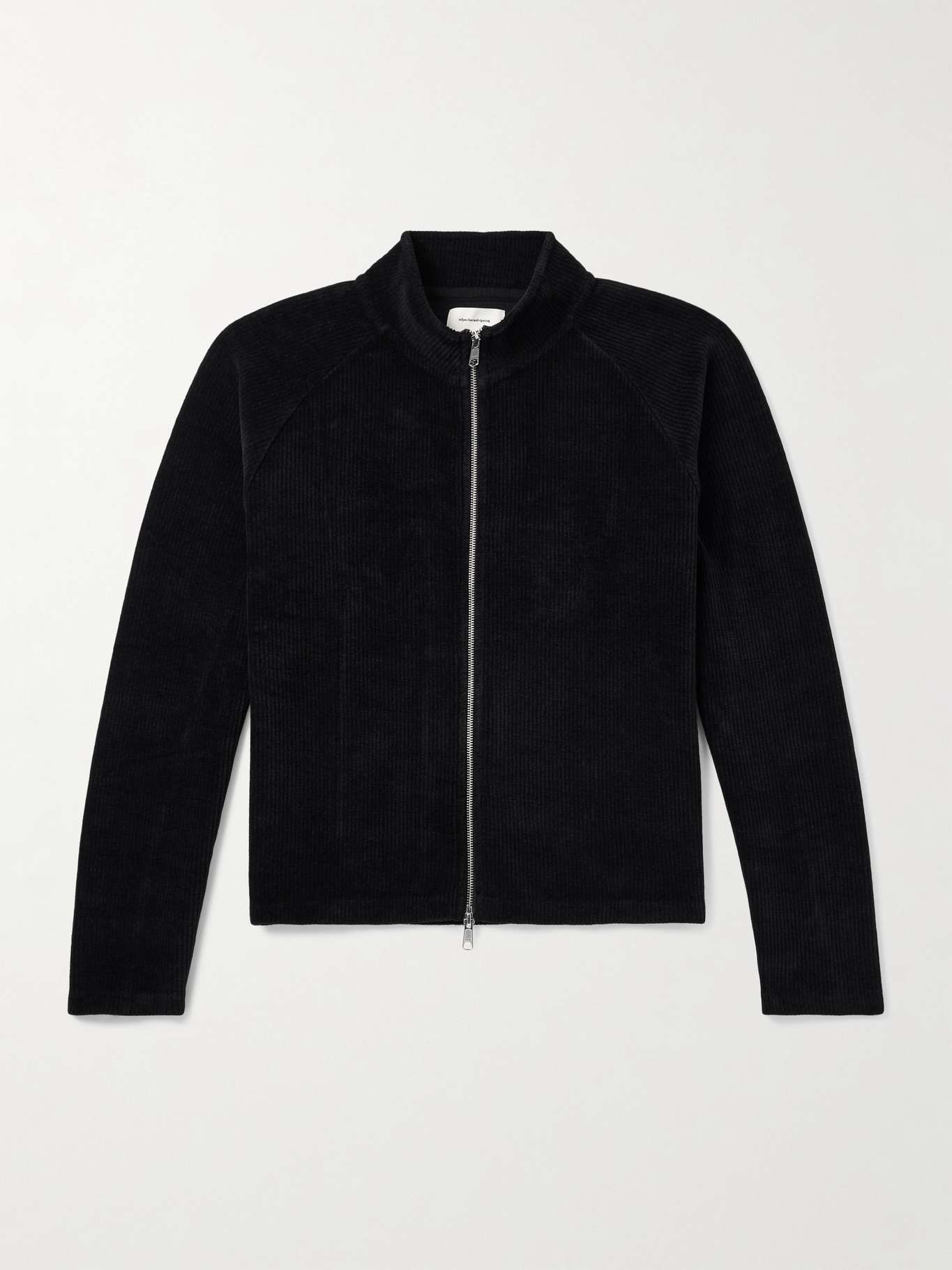 Mfpen pays close attention to the fit and feel of its clothing. This 'Leisure' zip-up sweater is made from washed cotton, ribbed to evoke the look of corduroy, and has comfortable raglan sleeves.