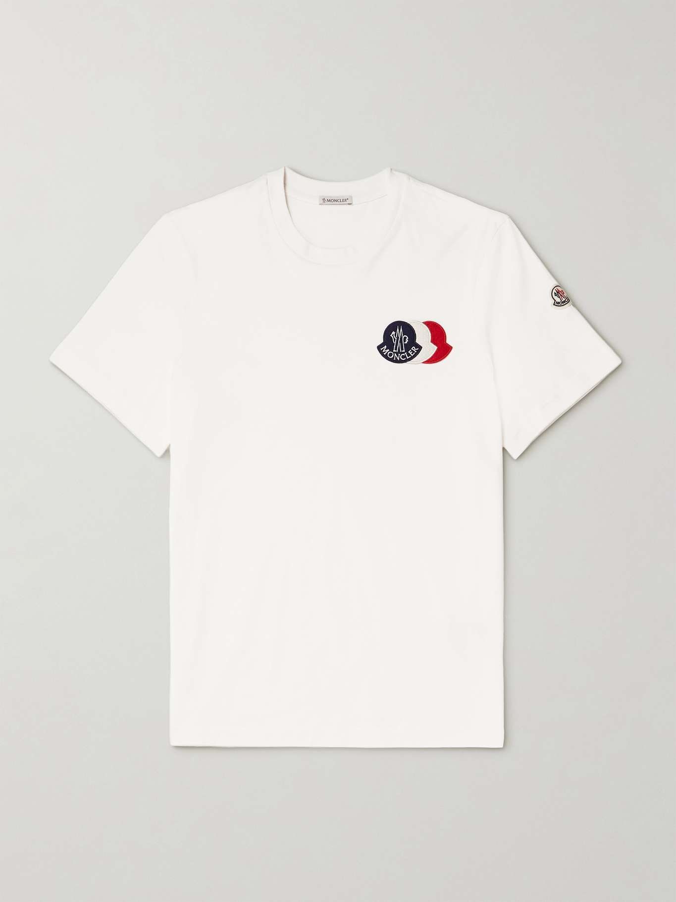 Moncler's T-shirt is appliquéd with a trio of logo patches at the chest in signature colours inspired by the French flag. It's cut from cotton-jersey that's combed for a soft, smooth handle.