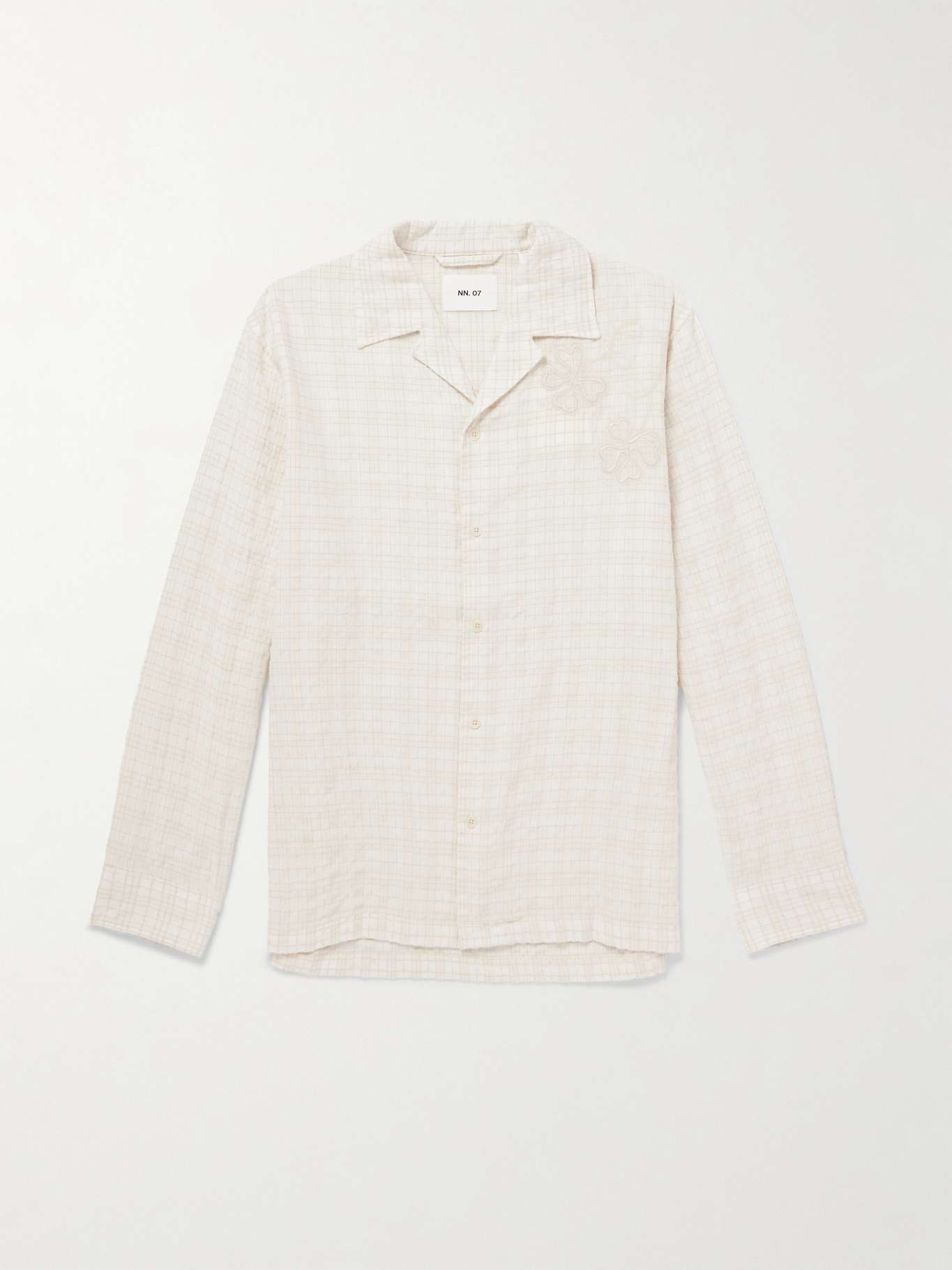 NN07 Ben 50041 Camp-Collar Embroidered Checked Organic Cotton-Blend Shirt