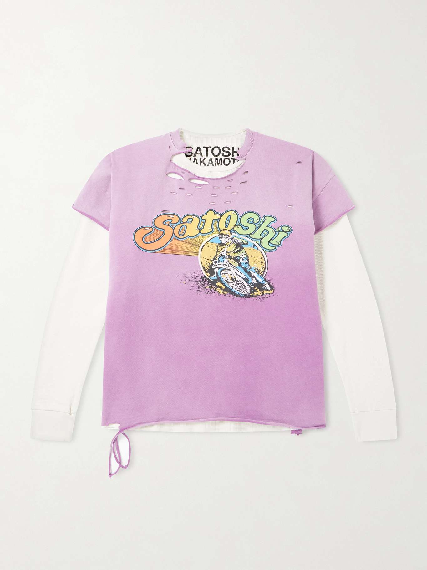 SATOSHI NAKAMOTO 1977 Dirtbike Layered Distressed Printed Waffle-Knit and Cotton-Jersey T-Shirt