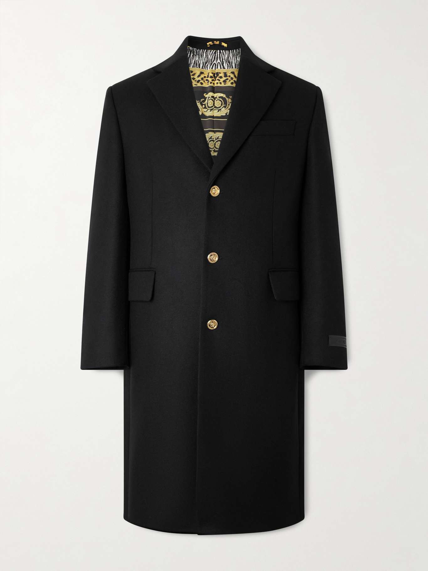 Versace's overcoat has been made in Italy from heavy wool-blend twill. It's entirely classic, save for the signature printed lining and gold-tone 'Medusa' buttons.