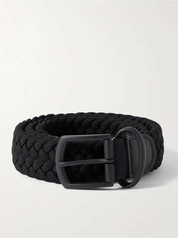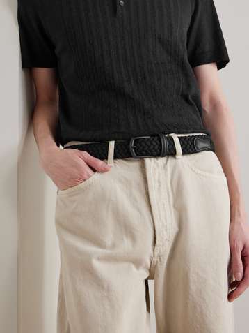 3.5cm Leather-Trimmed Woven Elastic Belt