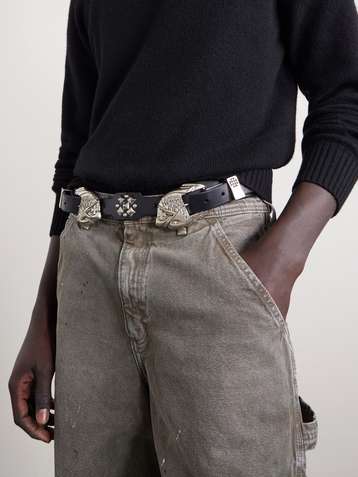 4cm Embellished Embossed Leather Belt