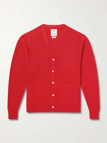 Shawl-Collar Double-Breasted Ribbed Cotton Cardigan