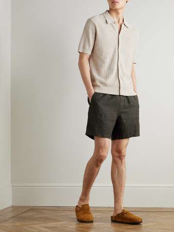 Gregor 1454 Straight-Leg Linen Drawstring Shorts