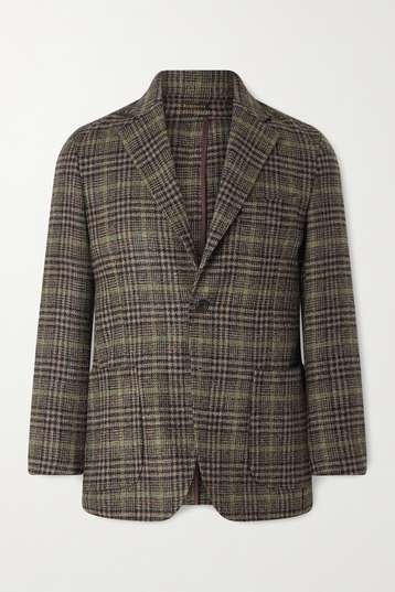 Unstructured Double-Breasted Herringbone Virgin Wool, Silk and Linen-Blend Blazer