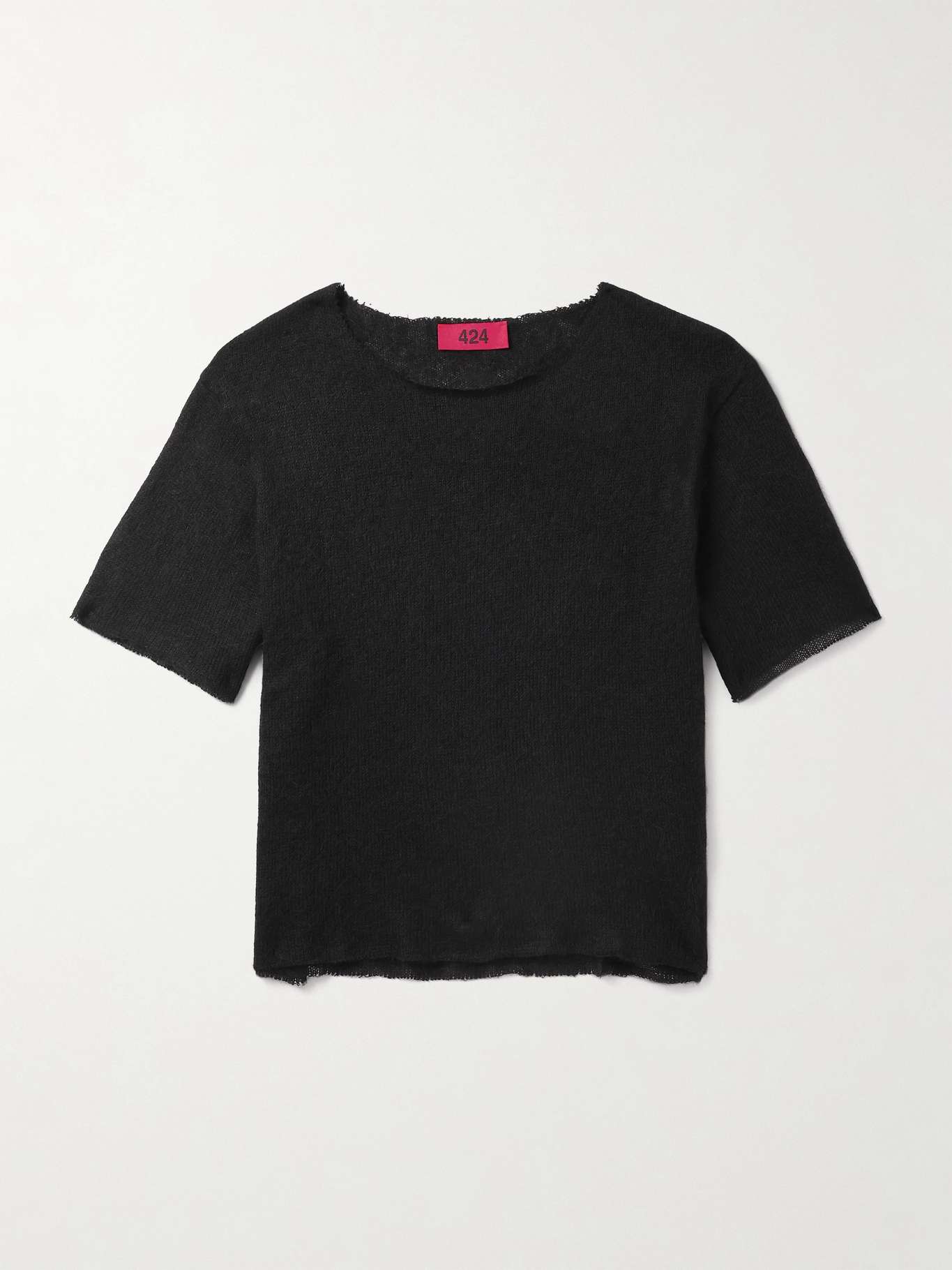 424's T-shirt is knitted from a tactile alpaca-blend that'll take to the shape of your body. It has loose fit with a cropped hem and wide neckline and is left raw at the edges.