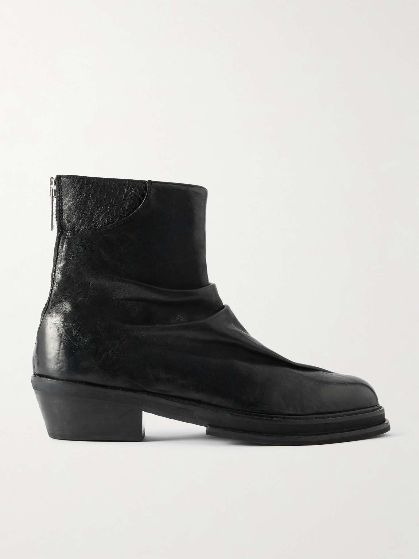 424's 'Marathon' boots have been handmade in Italy from 'aged' black leather that's ruched at the vamp for a cool draped effect. Modelled on vintage cowboy styles, they're set on block heels and fitted with back zips for easy on and off.
