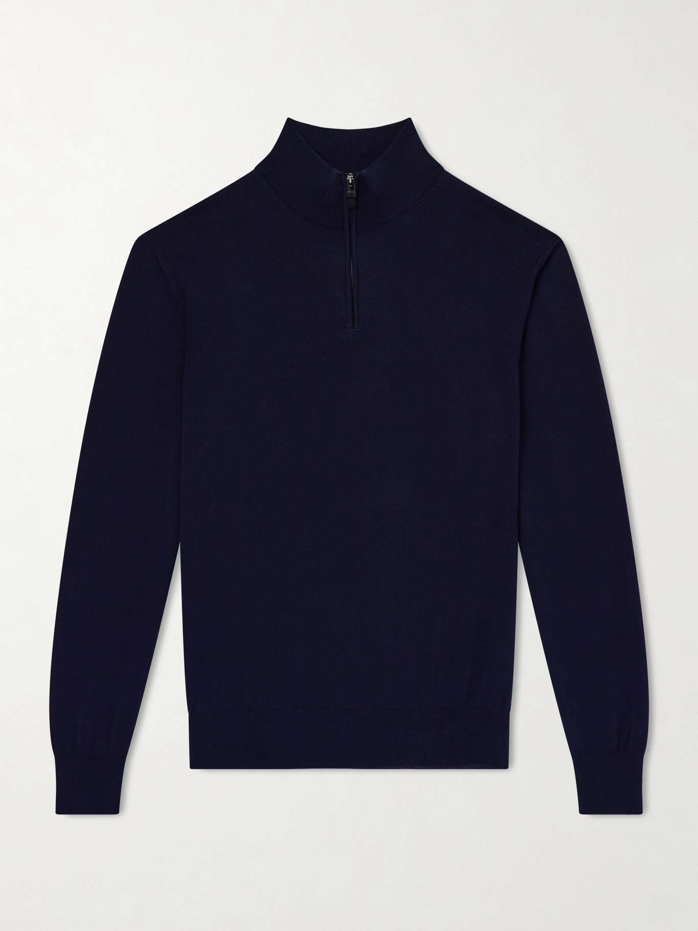 Family-run for three generations, Canali has been championing Italian elegance for over 90 years. This half-zip sweater is knitted from lightweight and breathable cotton and has ribbed trims.