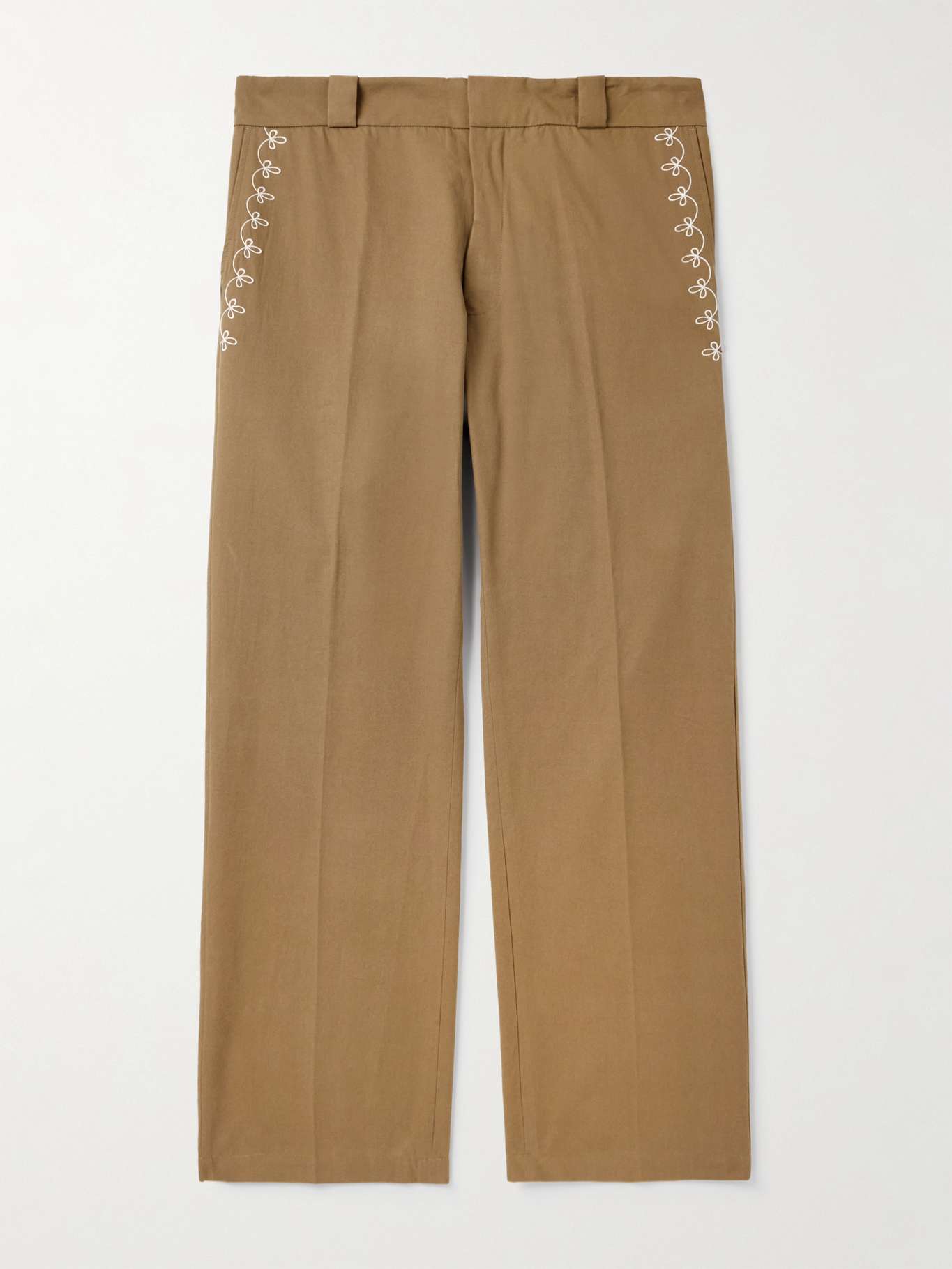 CHERRY LOS ANGELES Charro Straight-Leg Embroidered Cotton-Twill Trousers