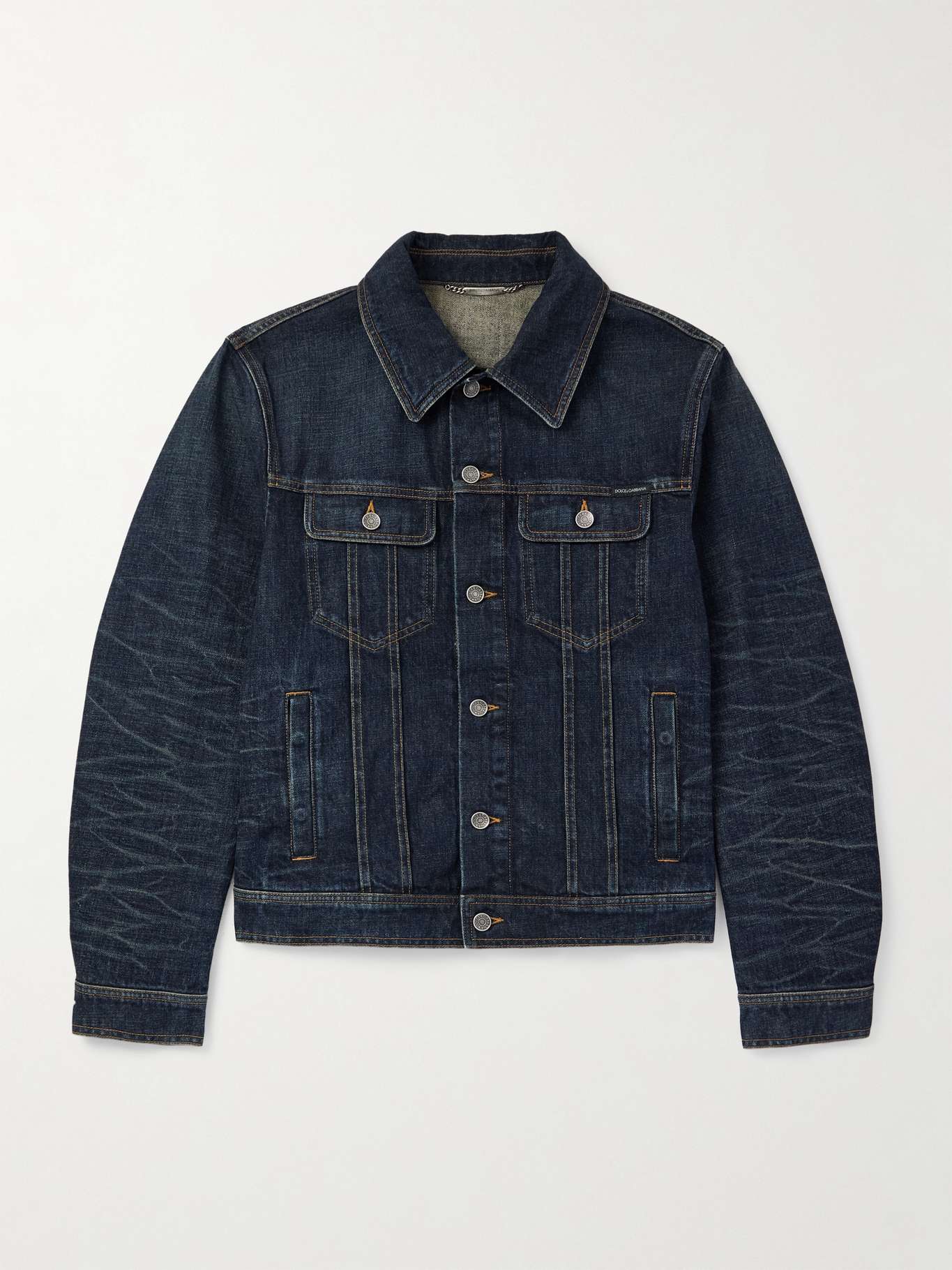 Dolce&Gabbana's denim jacket is a classic that you'll turn to time and again. Cut in a traditional trucker profile, it's made from dark-wash denim with amber topstitching. Wear yours with everything from jeans to shorts and sweats.