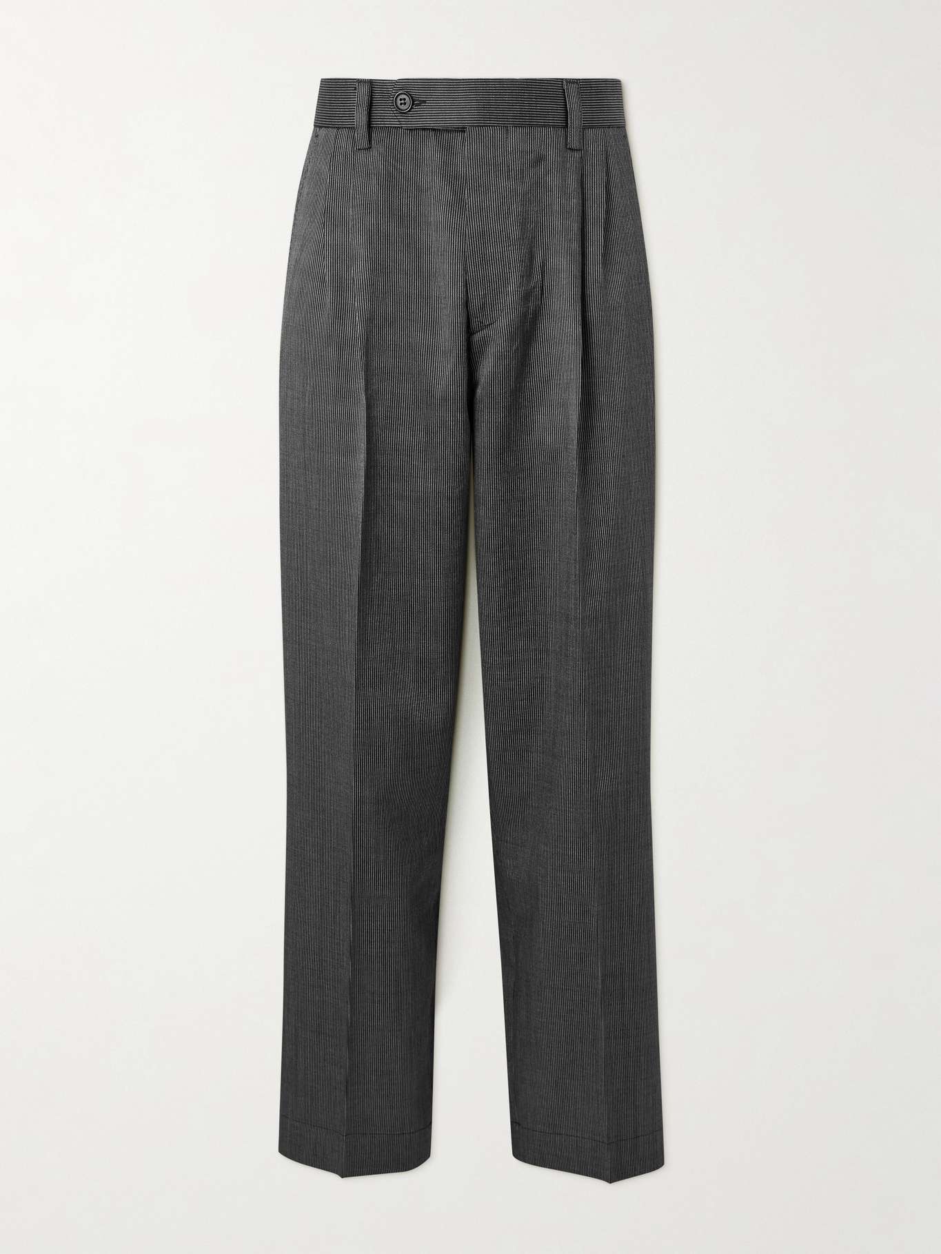 mfpen's trousers are cut from deadstock wool blended with silk for a smooth handle and excellent drape. Patterned with classic stripes, they're tailored with double pleats and have a roomy, wide cut.