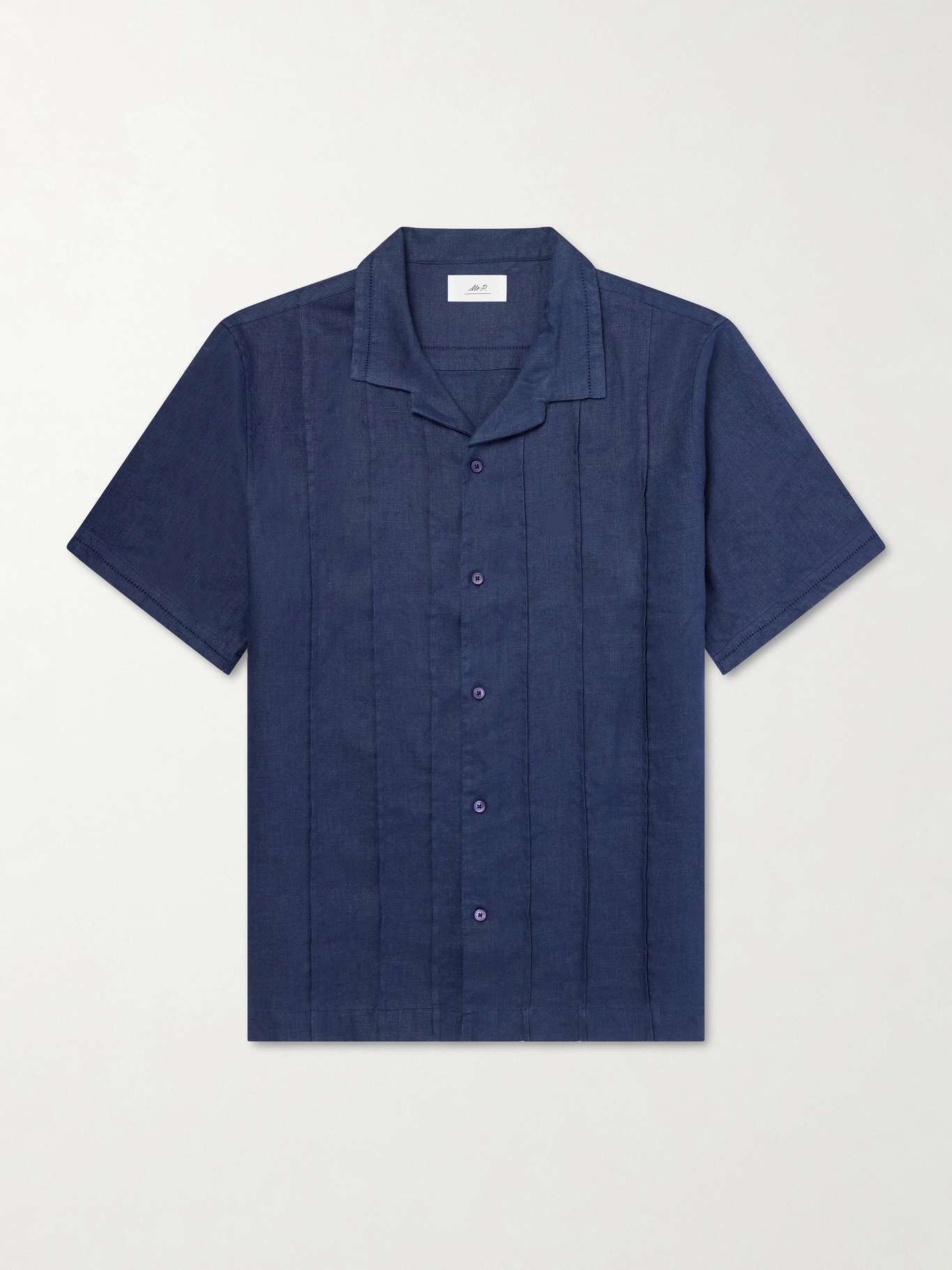 MR P. Camp-Collar Embroidered Pintucked Linen Shirt