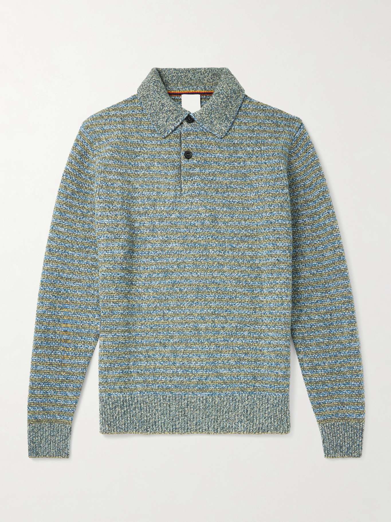 Paul Smith's knitwear will make a timeless addition to any curated wardrobe. This polo shirt is spun from superfine wool in a mélange striped pattern. Complete the look with the brand's jeans or trousers.