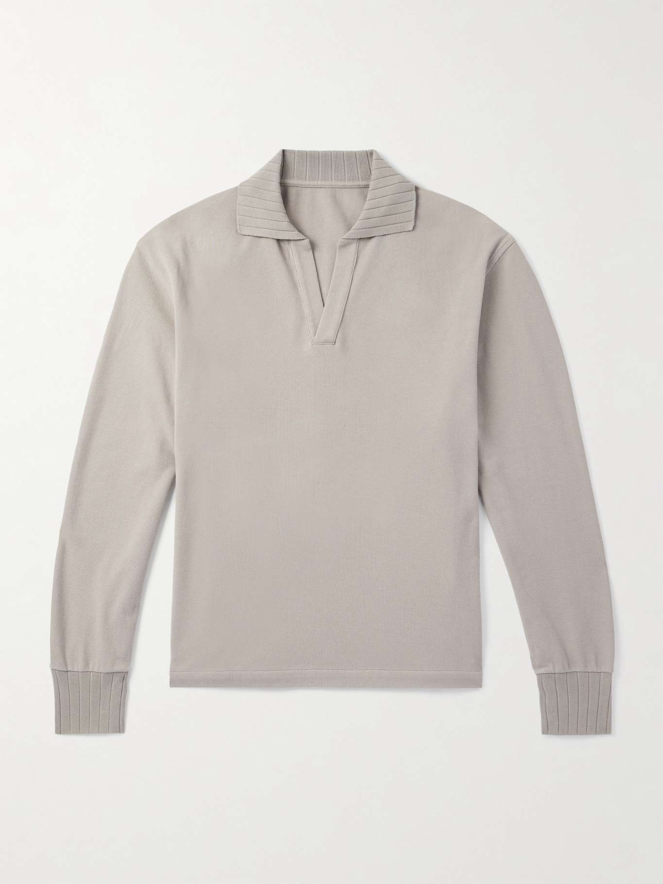 Stòffa's polo shirt is made from fine-gauge cotton-piqué, knitted by a second-generation clothier in Gallarate, Italy. It has a loose fit, an open placket and ribbed collar and cuffs.