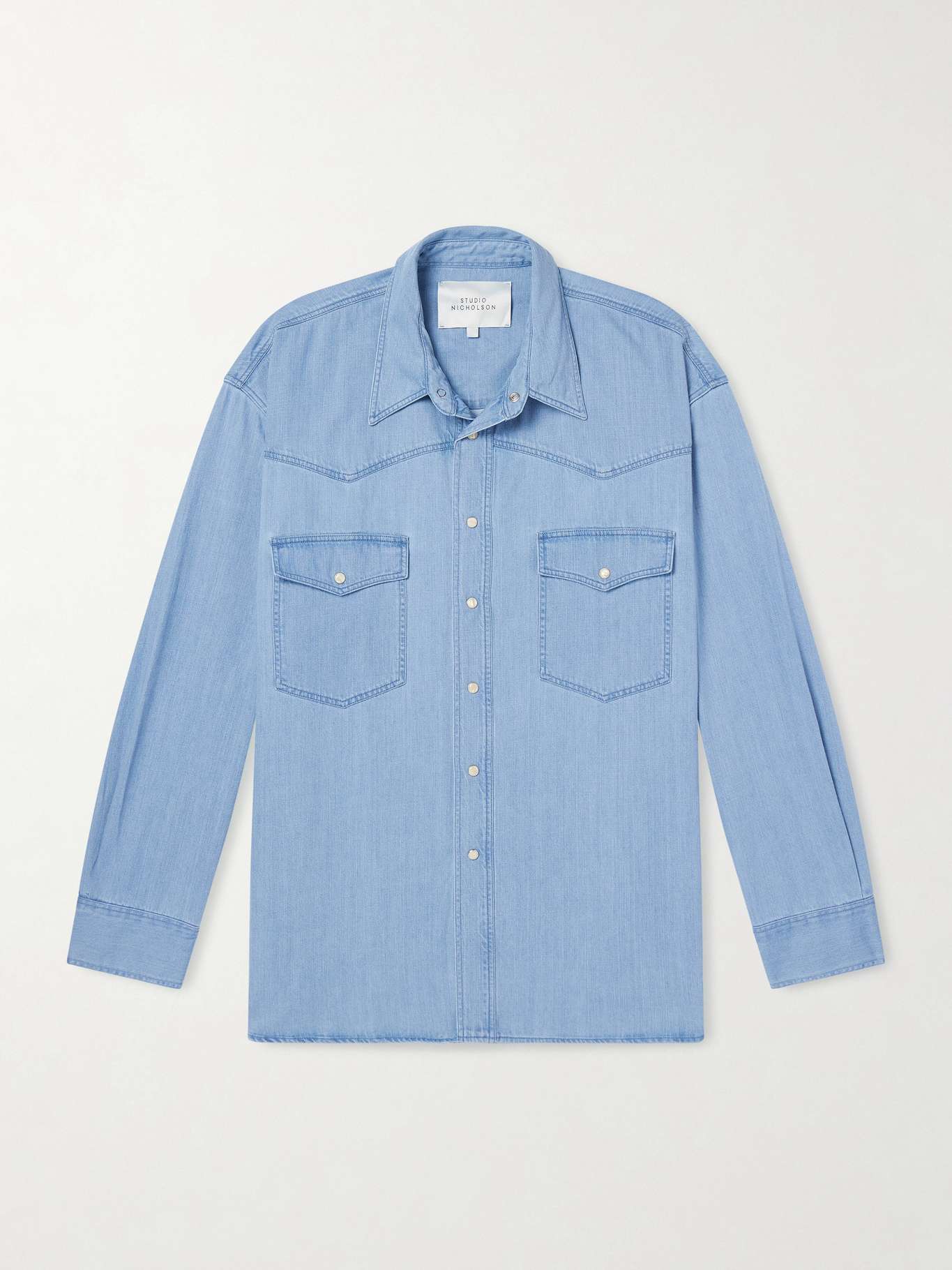 Studio Nicholson's take on the Western shirt feels typically refined. It's cut from light-washed denim with angled yokes across the shoulders and finished with pearlescent snaps.