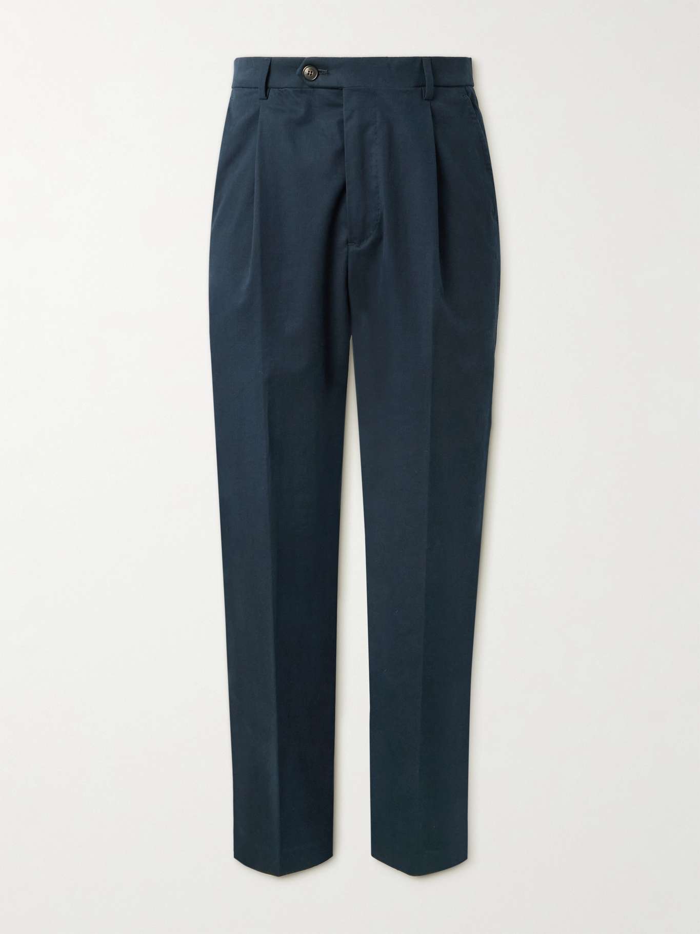 EXCLUSIVE AT MR PORTER. Umit Benan's pleated 'Richard' suit trousers are tailored to exacting standards. Made in Italy, they're cut from cotton-blend twill that's mixed with a little cashmere for softness. Use the buttoned waist tabs to adjust the fit.