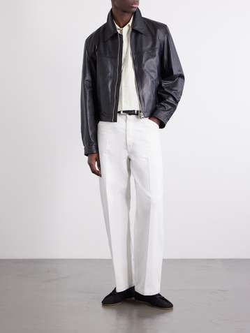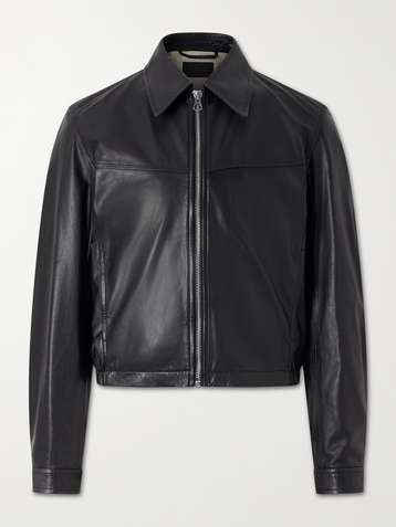 Pharos Wool-Blend Trimmed Leather Bomber Jacket