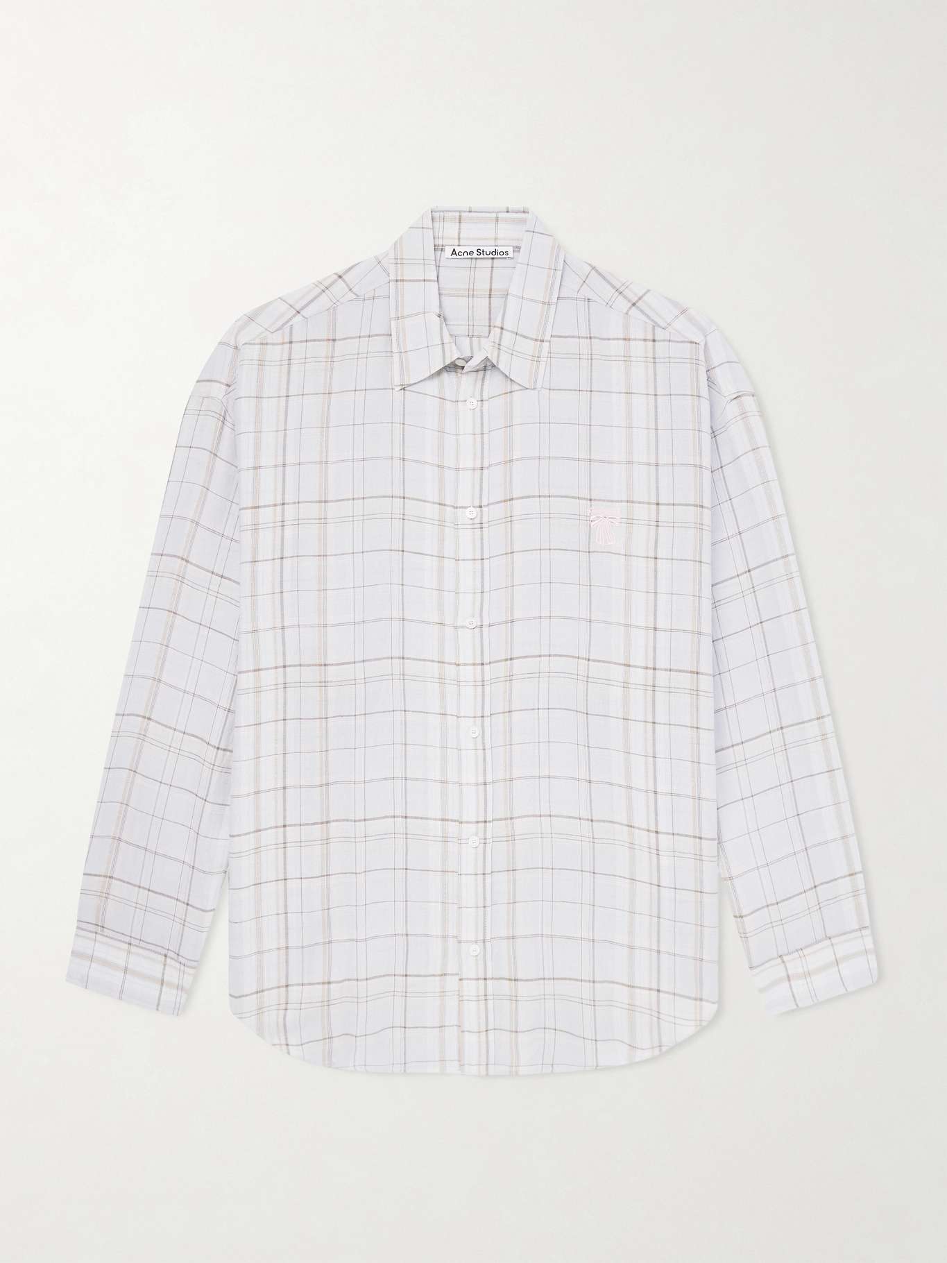 Acne Studios' checked shirt is cut from madras-inspired fabric, an airy material with a subtle shine and blended with plenty of linen. It has a relaxed fit with the seasonal bow embroidered to the chest.